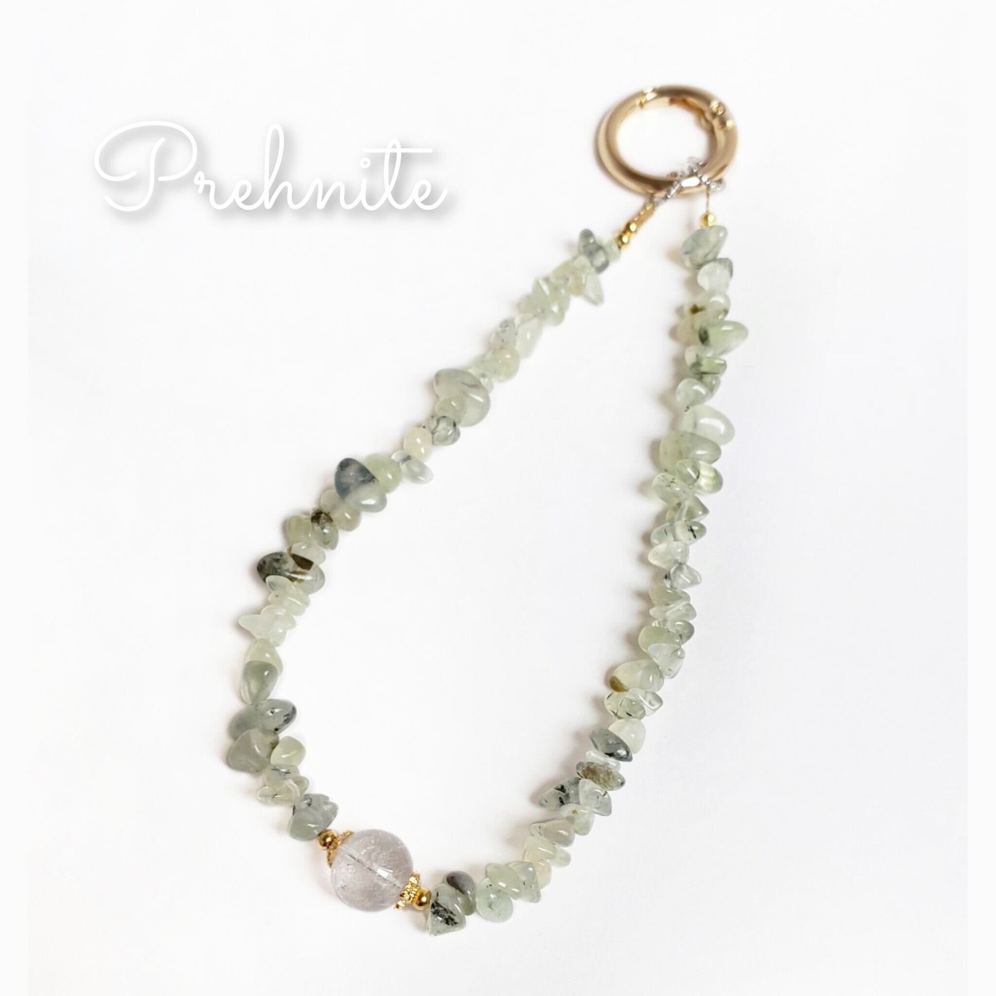 プレナイト - Prehnite - の さざれキーホルダー です⋆.˚⊹⁺